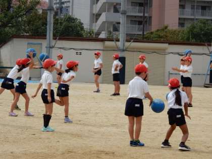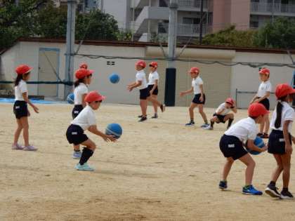 休み時間にボールを使って遊んでいる子どもたちは手慣れた感じで、受けたり、投げたりしていました。