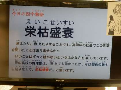 高学年になると、古典の暗唱があります。その中には、平家物語の冒頭部分の暗唱もあって、この栄枯盛衰によく似た言葉が次々と出てきます。