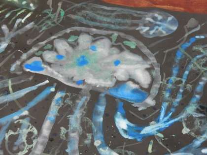 神秘的な海の中で、泳ぐクラゲがイメージできますね。