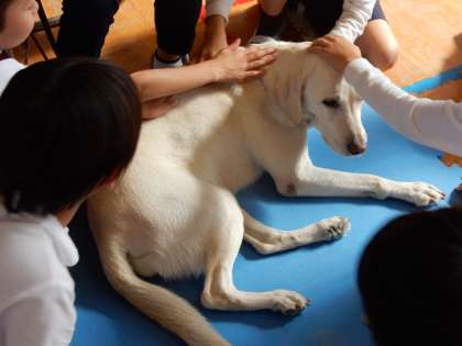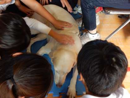 後半は、ハーネスを外して、3年生の子どもたちと戯れていました。