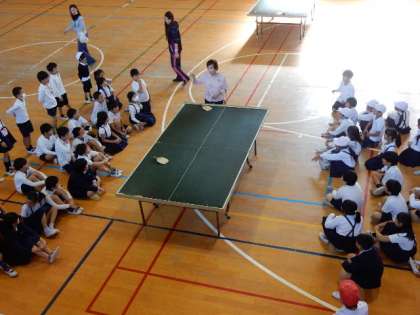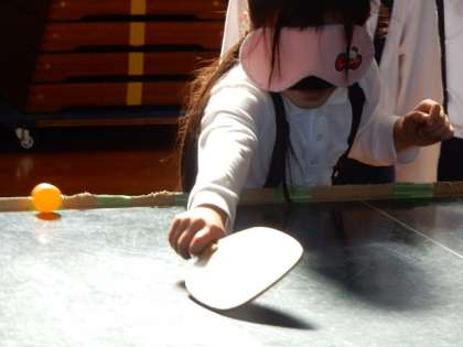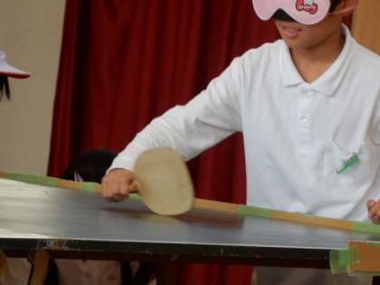 卓球台の周りに枠があったり、ピン球におとの仕掛けがあったりします。