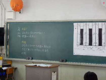 ひなたとひかげの地面の温度の違いについて学習しています。