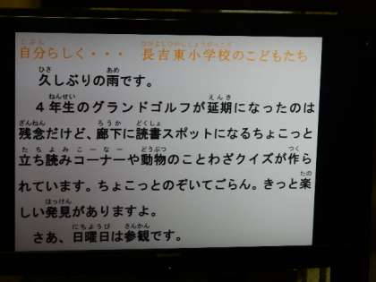 図書委員会の立ち読みコーナーも参観時にご覧ください。