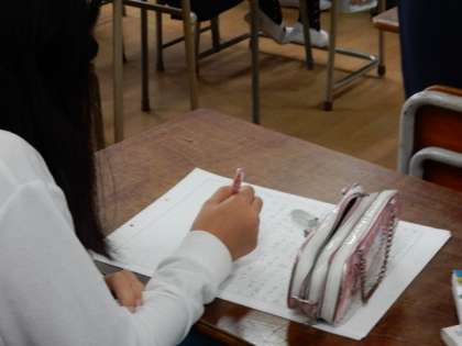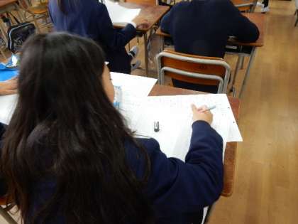 修学旅行の時の作文を書いています。