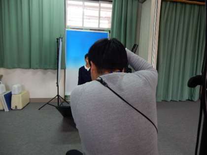 この時期になると、6年生のみなさんには卒業に向けたいろいろな取り組みがあります。その一つが、卒業アルバム写真撮影です。午前中に、個人写真や学級写真を撮影します。