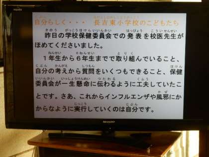 昨日は、健康委員会のみなさんによる「学校保健委員会」を行いました。校医、学校薬剤師の方にもご来校いただきました。