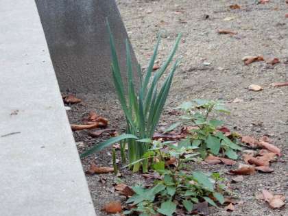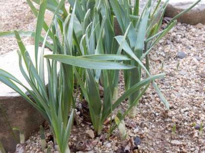 校内の何か所かにスイセンが芽を出しています。