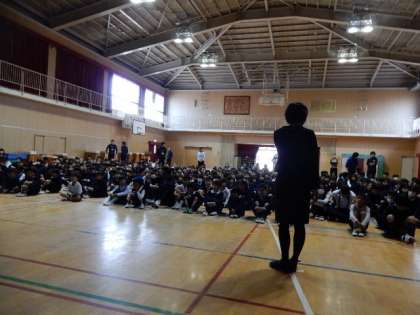 児童朝会後に、校長先生の「全校道徳」を行いました。