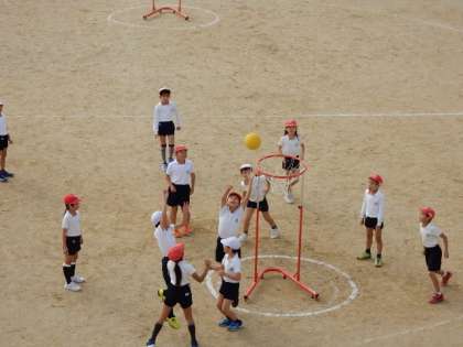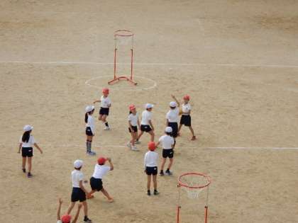 味方にパスをして、ゴールできたときはみんなで喜びました。