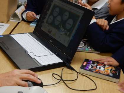 夏にした図書室の本のバーコード化で貸し出し作業が速くできるようになりました。