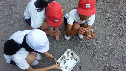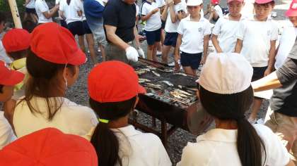 自分たちで獲ったニジマスをその場で塩焼きし食べました。