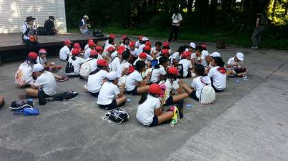 アスレチックが終わり、森の中で一休み!