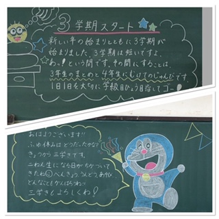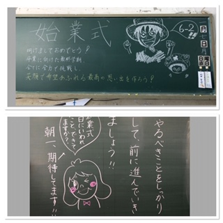 あたたかい、先生の思いのこもった黒板メッセージが登校する子どもたちを迎えました。