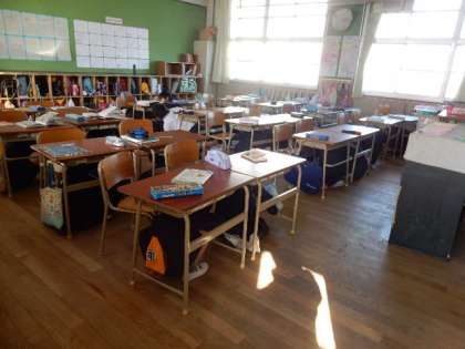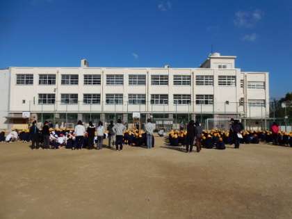 放送のあと、机の下に隠れ、地震がおさまり、運動場へのに避難にかかった時間は、4分を切りました。担当の先生からは、「半分の時間にしましょう」とお話がありました。自宅外で、多くの人が集まる場所では、避難の指示に従う必要があります。それぞれが勝手な行動をとると、不要な事故になりかねません。