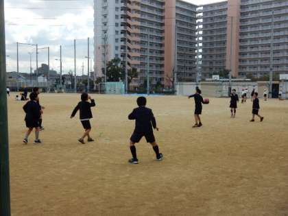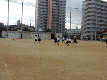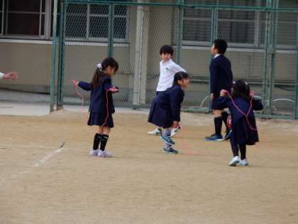 冬の寒さに負けずに、運動場で遊んでいる子供たち。