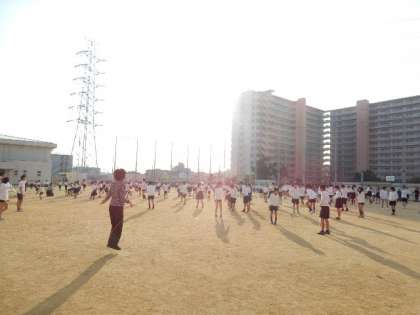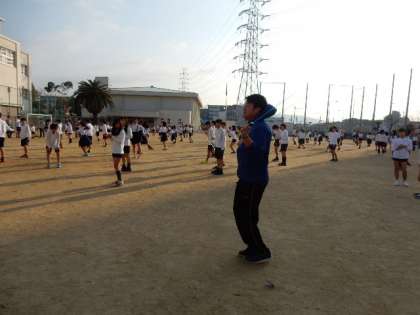 学級・学年休業で運動場に出ている人数は少なくなっていますが、登校している子供たちは元気に縄跳びをしています。