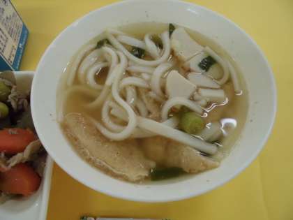 「きつねうどん」をイメージしたうどんで、「とろろ昆布」をのせて食べます。お出しの味と香りがしてとてもおいしかったです。