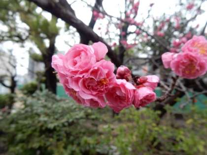 今週の気温の上昇で、講堂前の梅も開花してきました。
