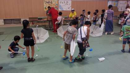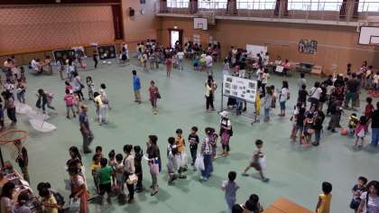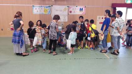 子どもたちはそれぞれのお店を回り、ゲームをして楽しんでいました。ゲームをした後、景品をもらっていました。景品で両手がふさがっている子もいました。さすがに、高学年になると、リュックや手提げかばんを用意している子も多かったです。