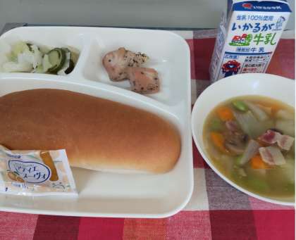 野菜たっぷりのスープ煮や、キャベツときゅうりのサラダといっしょに、とてもおいしくいただきました。