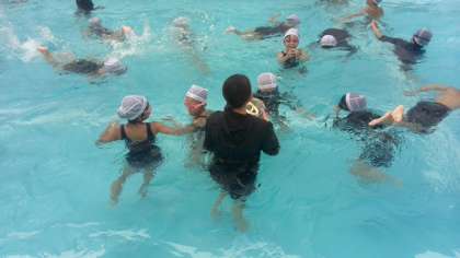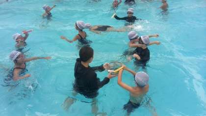 はじめは、水をこわがっていた児童も、しっかり顔をつけたり、もぐったりできるようになって、「はじめて、とれた!」とうれしそうに宝を見せてくれました。
