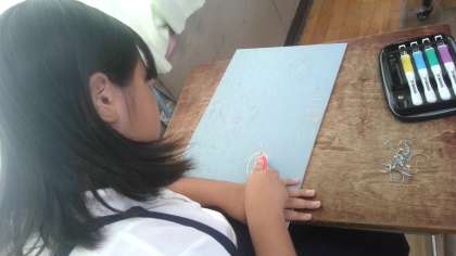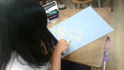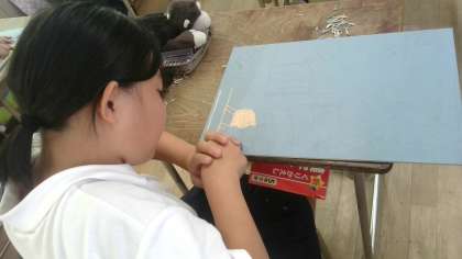 彫刻刀の使い方に気を付けて、慎重に彫っていました。