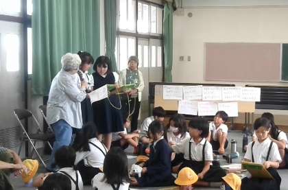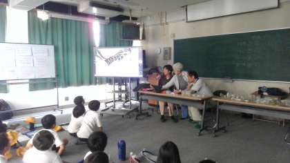 教室にもどって、どんな生き物を見つけてきたのかを確認しました。