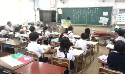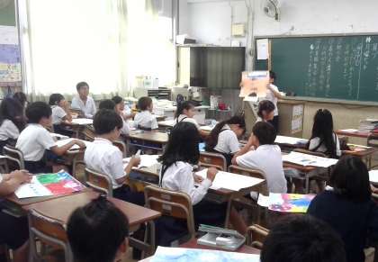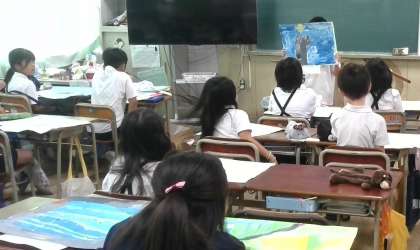 「あの日あの時の気持ち」の作品ができあがって、みんなの前で作品紹介をしました。
