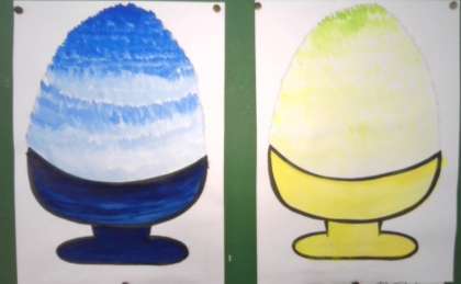 イチゴ味、メロン味、ブルーハワイ味・・・おいしそうなかき氷です。