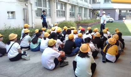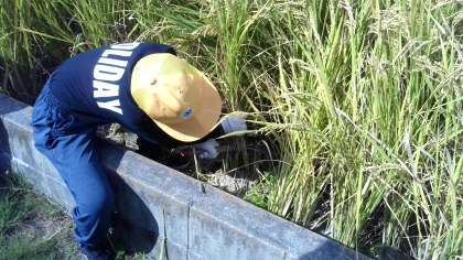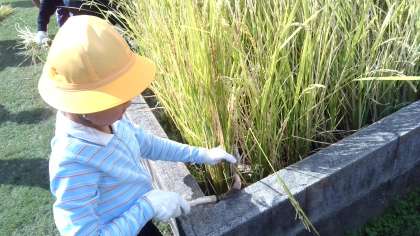 JAの方に来ていただいて、稲刈りの仕方を教えていただきました。