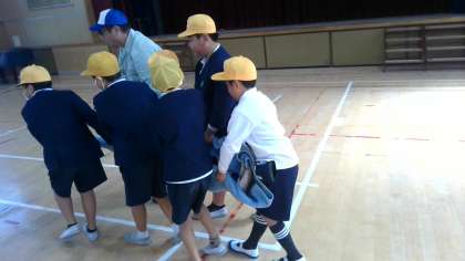 担架がないときに、毛布などを担架代わりにして搬送するしかたを教えていただきました。
