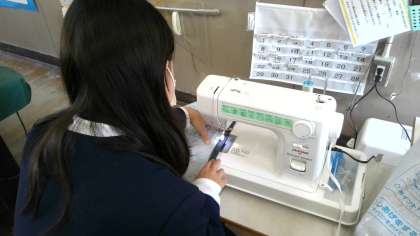 しつけをしてから、ミシンで縫っています。まっすぐ上手に縫えていました。