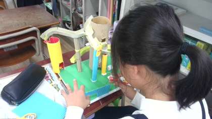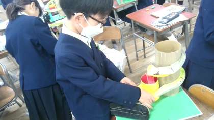 試行錯誤して、うまくビー玉が転がるように作っています。