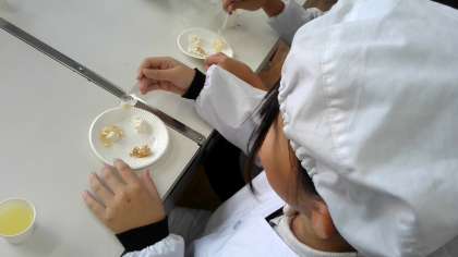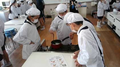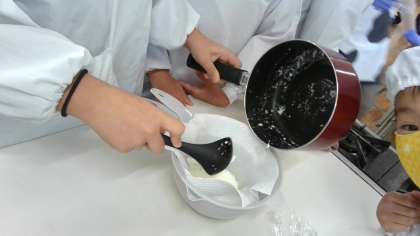 「骨の成長に大切なことを考えよう」についての座学の後、チーズ作りをしました。
