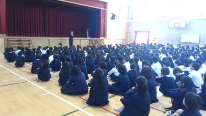 まずはじめに、校長先生が新聞に載っていた「小学生が読んだ本ランキング」を発表していきました。