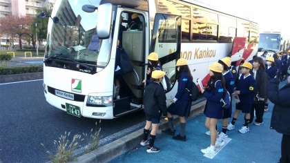 出発式の後、バスに乗り込み予定通りに出発しました。