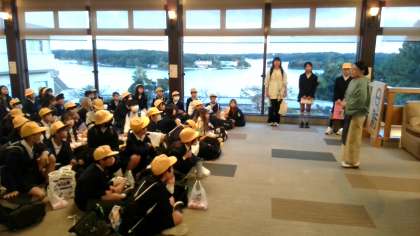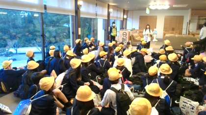 宿舎の「みち潮」に到着しました。開舎式を行い、それぞれの部屋へ移動です。
