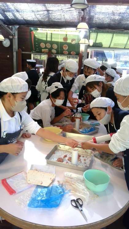 羊の腸に 肉を詰めていきます。美味しくできますように。