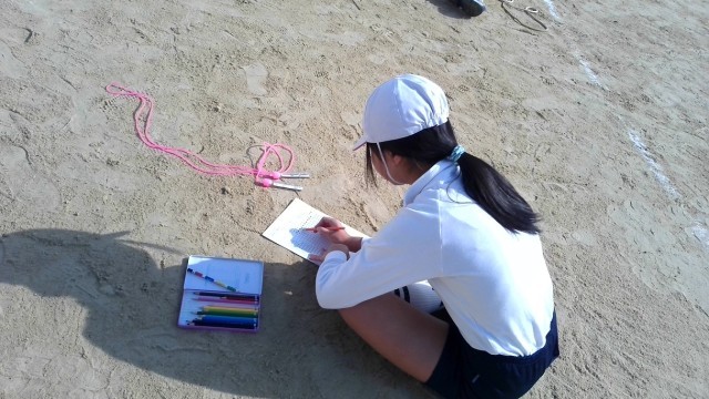 ペアになってお互いのとぶ回数を数えて、なわとびカードに記録していきました。