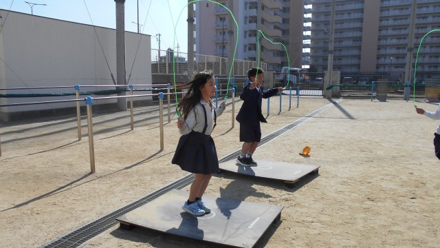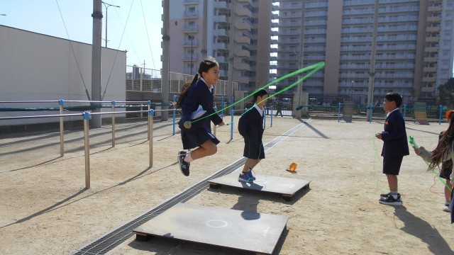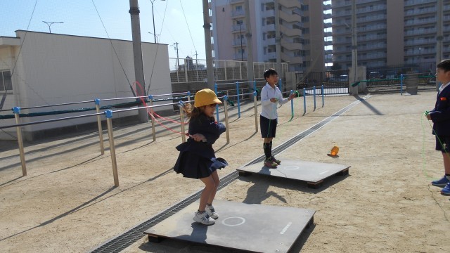 なわとびのジャンプ台を使って練習をしています。