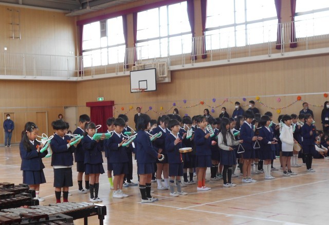 2年生は、歌「ウンパッパ」と合奏「アンダルコの歌」でお祝いしました。