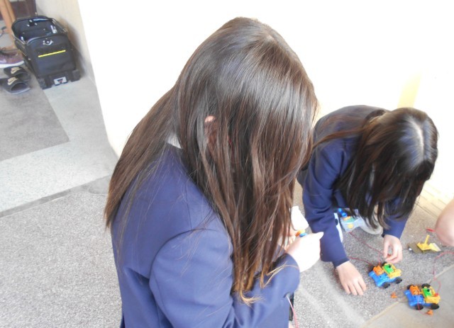 手回し発電機や光電池を使って車を動かしました。