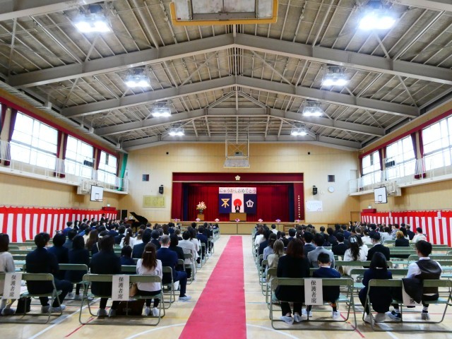 本日、入学式が行われました。真新しい標準服に身を包んだ新入生が、本校の正門をくぐり、小学校生活の第1歩を踏み出しました。