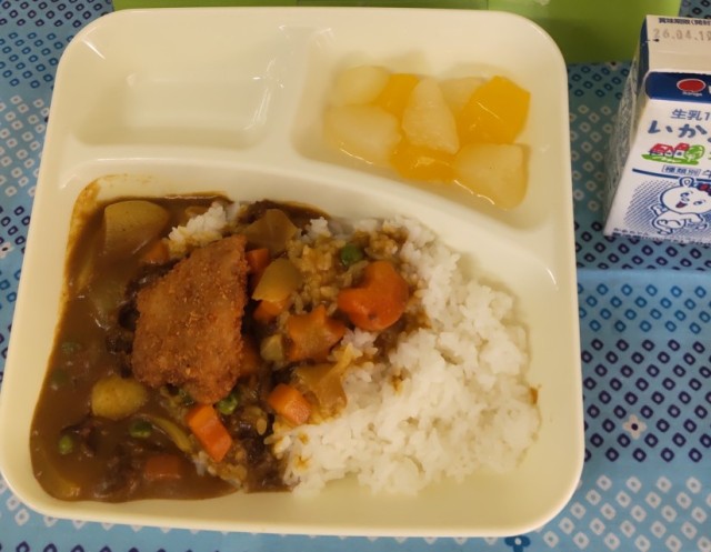 おいしいカツカレーと、さわやかなフルーツゼリー、とてもおいしくいただきました。
