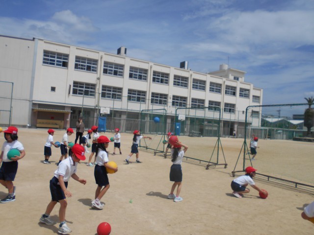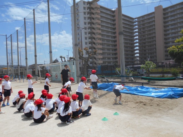 ネットを超えるように、全身を使って、ボールを投げたりしていました。