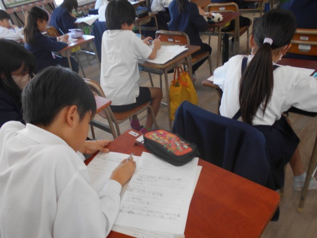子どもたちは真剣に考えて、ワークシートに自分なりの考えをびっしりと書き込んでいました。