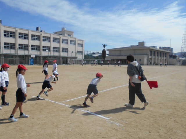 4年生は、1時間目からスポーツテストに向けての練習に取り組みました。