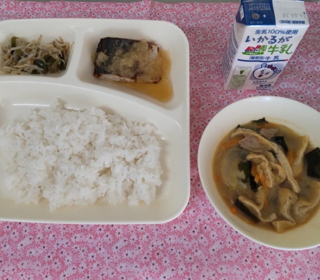 野菜たっぷりのみそ汁や、もやしとピーマンのいためものとの相性もバッチリ!ごはんのすすむ和食でした。