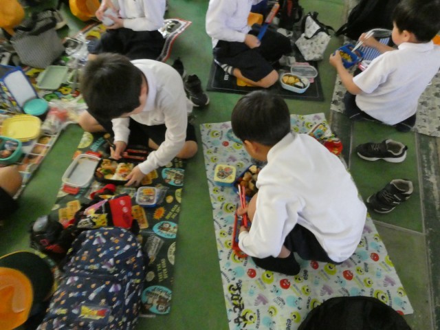 友だちと話しながら食べたお弁当は、より一層おいしく、ほっぺを落としている子どもたちがた~くさん。