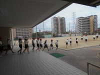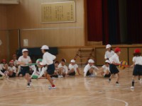 3年生は、2本の棒でボールを挟み、落とさないように、二人組で運ぶリレーをしました...